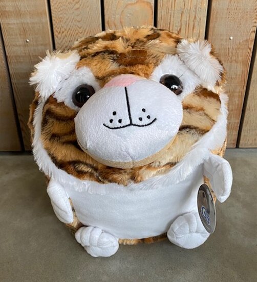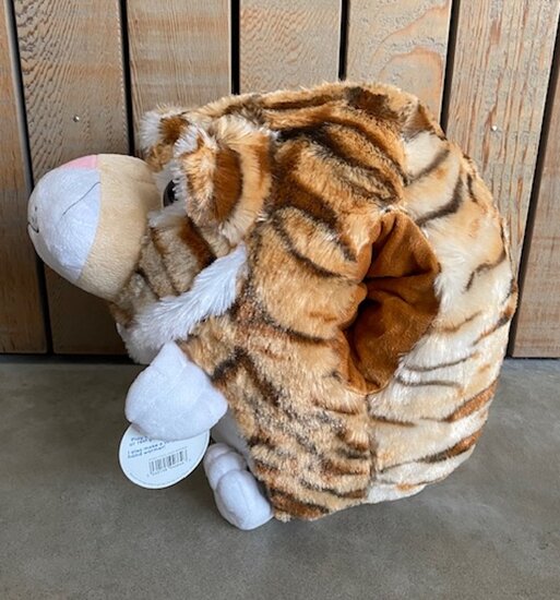 Cozy Time tijger knuffelkussen handwarmer 35 cm caramel wit zwart