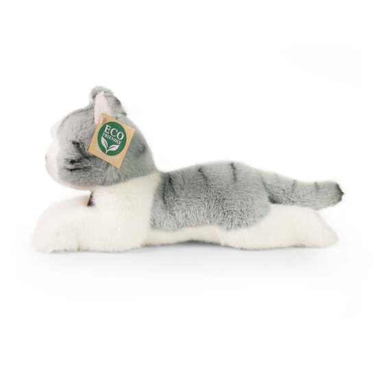 Rappa ECO knuffel kat / poes 26 cm - realistische knuffel van recyclede PET flessen - grijs, wit